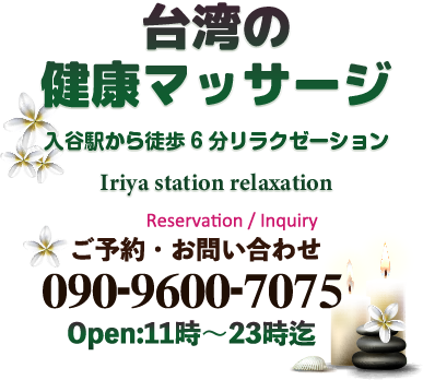 日ごろの疲れを当店でリフレッシュしませんか? お仕事帰りに、日ごろの疲れを当店でリフレッシュしませんか? 腕に自信のあるセラピストが施術いたします。 上級の設備の店内は落ち着いた雰囲気で癒されます。 都会のオアシス当店に是非ご来店ください。 癒しのひと時をお過ごしください。 スタッフ一同心よりお待ちしております。